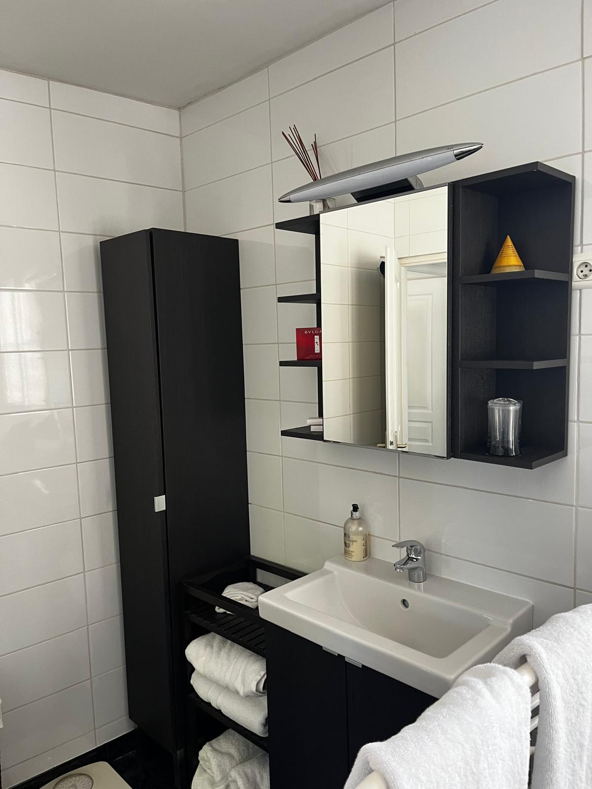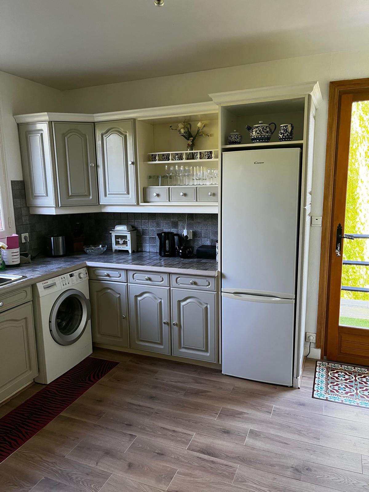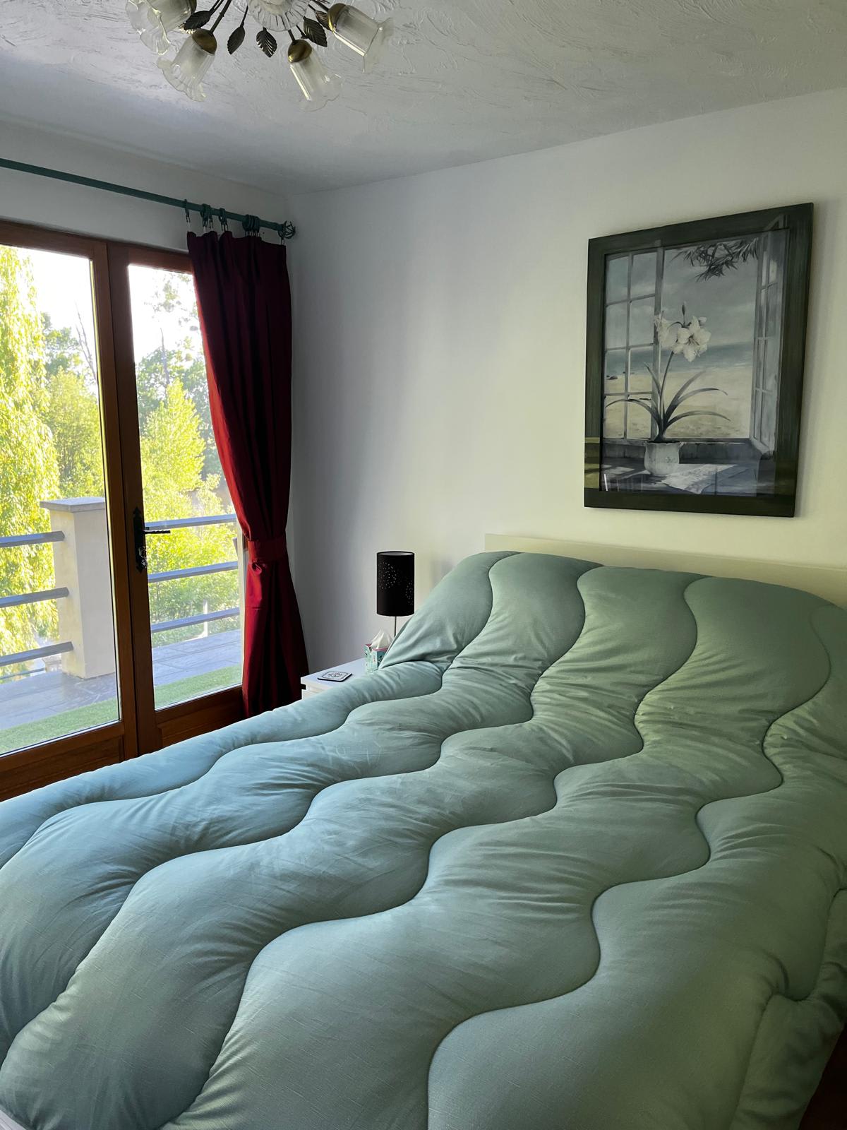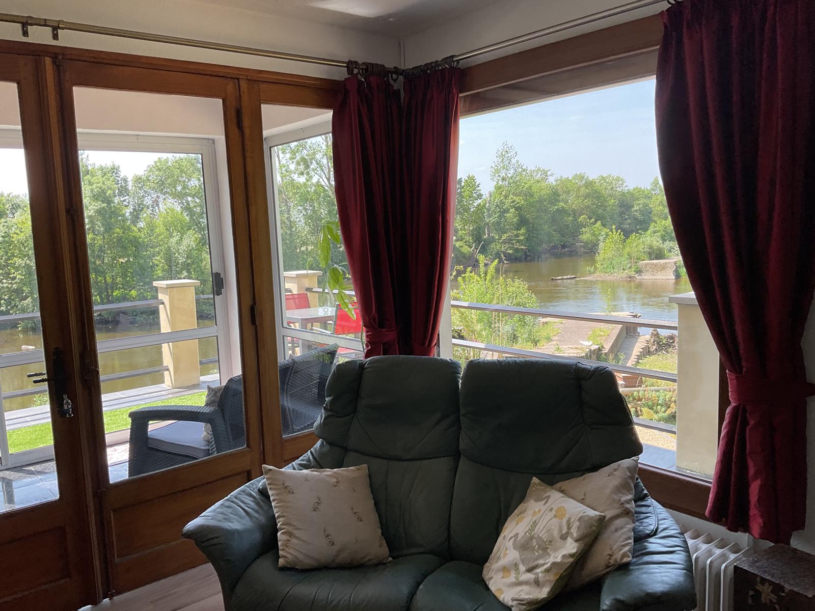 The gîte sleeps two to four guests comfortably. The master bedroom offers serene river views, while the second double bedroom overlooks the lush orchard and gardens. The modern bathroom is designed for indulgence, featuring a full-size bathtub and a separate, large walk-in rainfall shower. An independent toilet adds extra convenience.